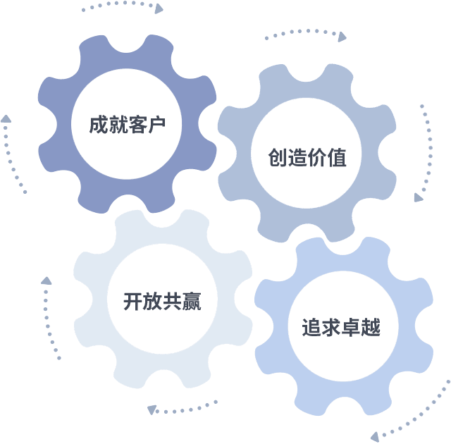 成就客户是一切决策的出发点,创造价值是衡量所有工作的标准,追求卓越是星耀国际做事做人的态度,开放共赢是星耀国际的格局也是最终的结果。价值观的齿轮环环相扣,推动着组织里的每个人不断向前。