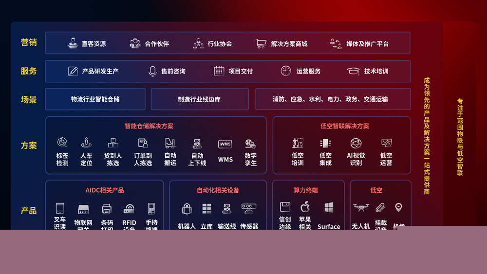 聚合国内外先进的物联网硬件产品品牌,聚焦数字化仓储、机器人运营、低空智联网等领域,共同打造适合客户业务场景的解决方案并提供交付服务